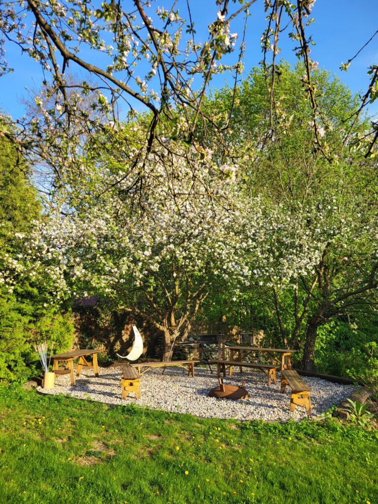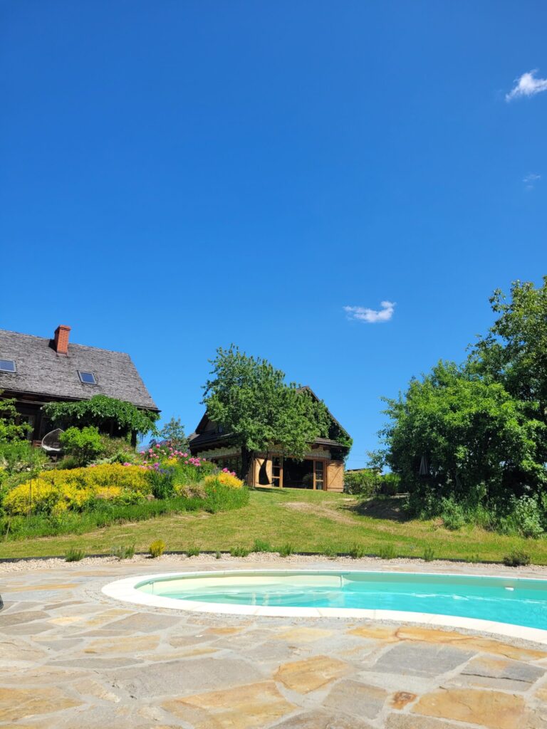 Naszą bazą będzie siedlisko „Zagajdzie” – raj na ziemi, jak mówi o niej właścicielka, położony na skraju lasu. To dom z duszą, zbudowany z naturalnych materiałów, otoczony pięknym ogrodem.